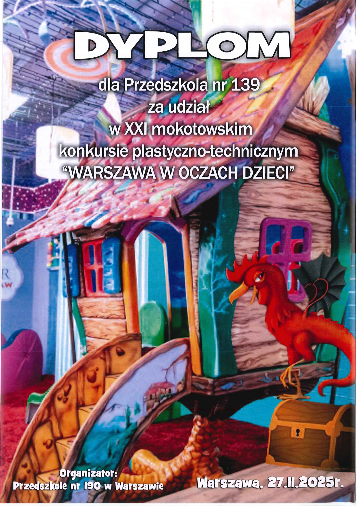 Dziękujemy za reprezentowanie naszego Przedszkola w konkursie "Warszawa w oczach dzieci" przez Paulę z gr. IV.