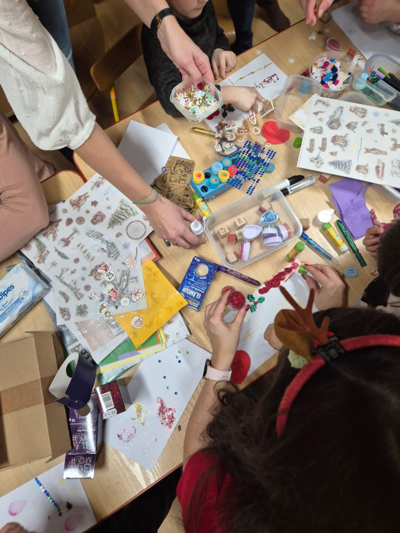Drodzy Rodzice bardzo dziękujęmy za Wasze zaangażowanie podczas kiermaszu świątecznego. Razem z dziećmi przygotowaliśmy drobne upominki świąteczne. Rada rodziców zorganizowała w tym roku prócz sprzedaży ozdób świątecznych dodatkowe atrakcję. Można było przygotować kartkę świąteczną dla najbliższych. A także spróbować pysznych ciast, napić się ciepłej czekolady.