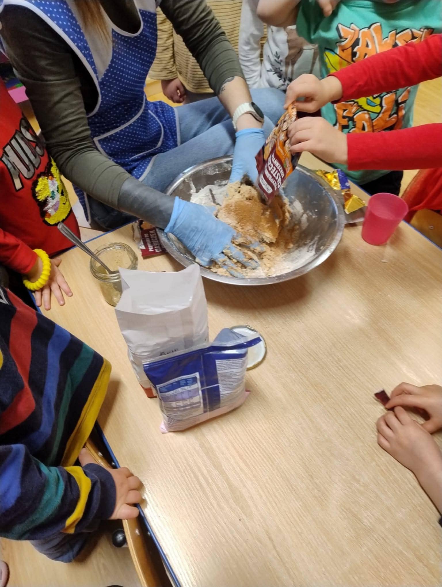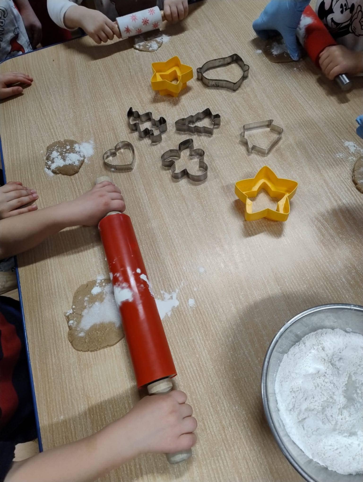 3 grudnia odbyły się warsztaty kulinarne. Dzieci we wszystkich grupach piekły pierniczki. Najpierw przygotowywały ciasto. Później ugniataliśmy i wałkowaliśmy. A na końcu wycinaliśmy foremkami kształty i dekorowaliśmy. Piękny świąteczny zapach tego dnia było czuć w całym przedszkolu.